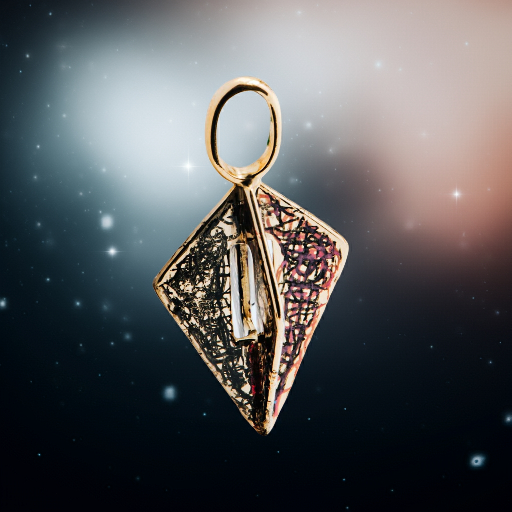 This selfic pendulum, crafted in 18 karats gold with alchemical microcircuitry, is a very complex instrument, much more efficient and powerful than any traditional pendulum. It is the result of decades of research, and greatly transcends its traditional dowsing role.