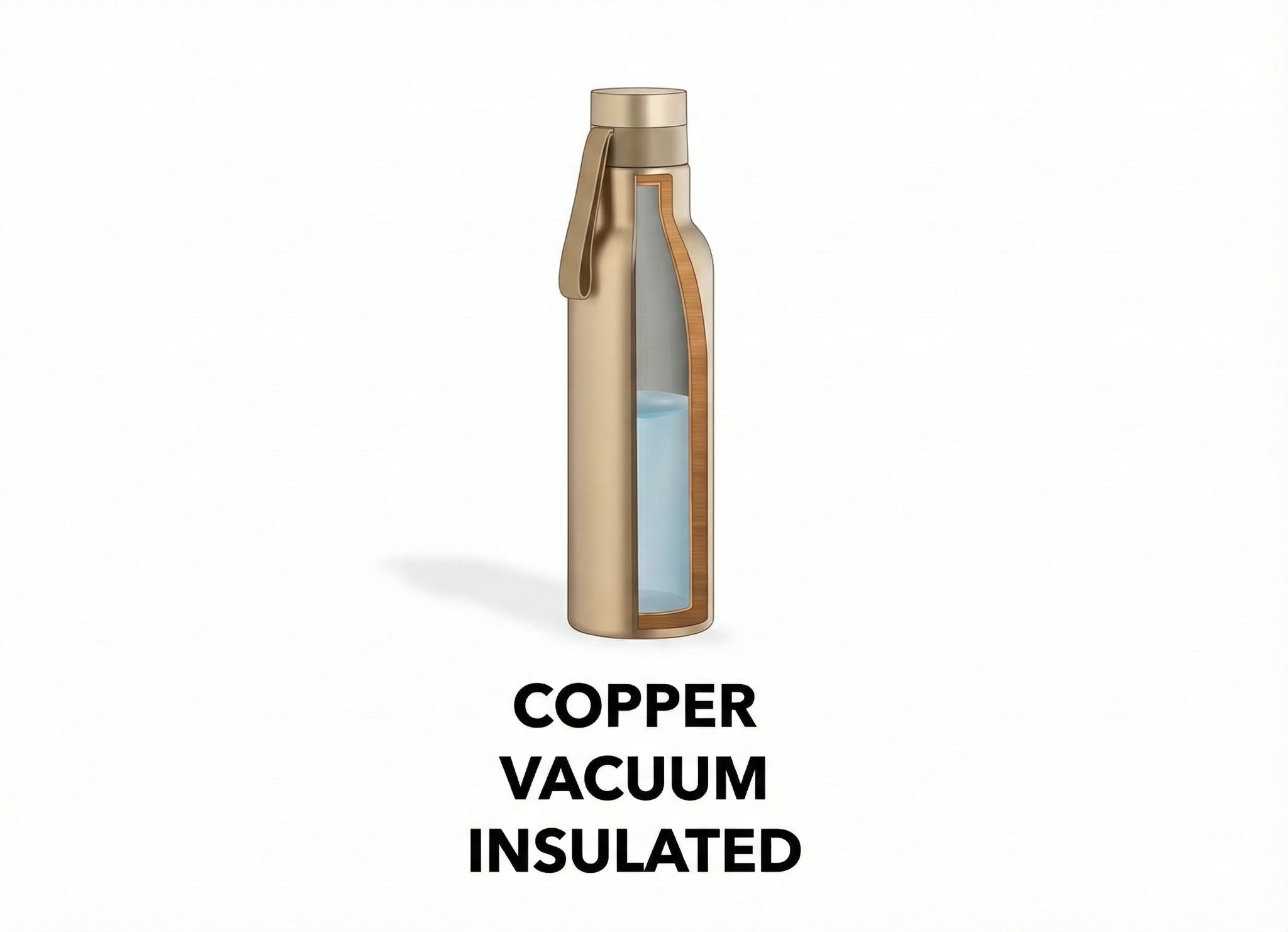 The copper interior enhances thermal efficiency and helps maintain a stable environment that supports the integrity of the water’s energetic information.
